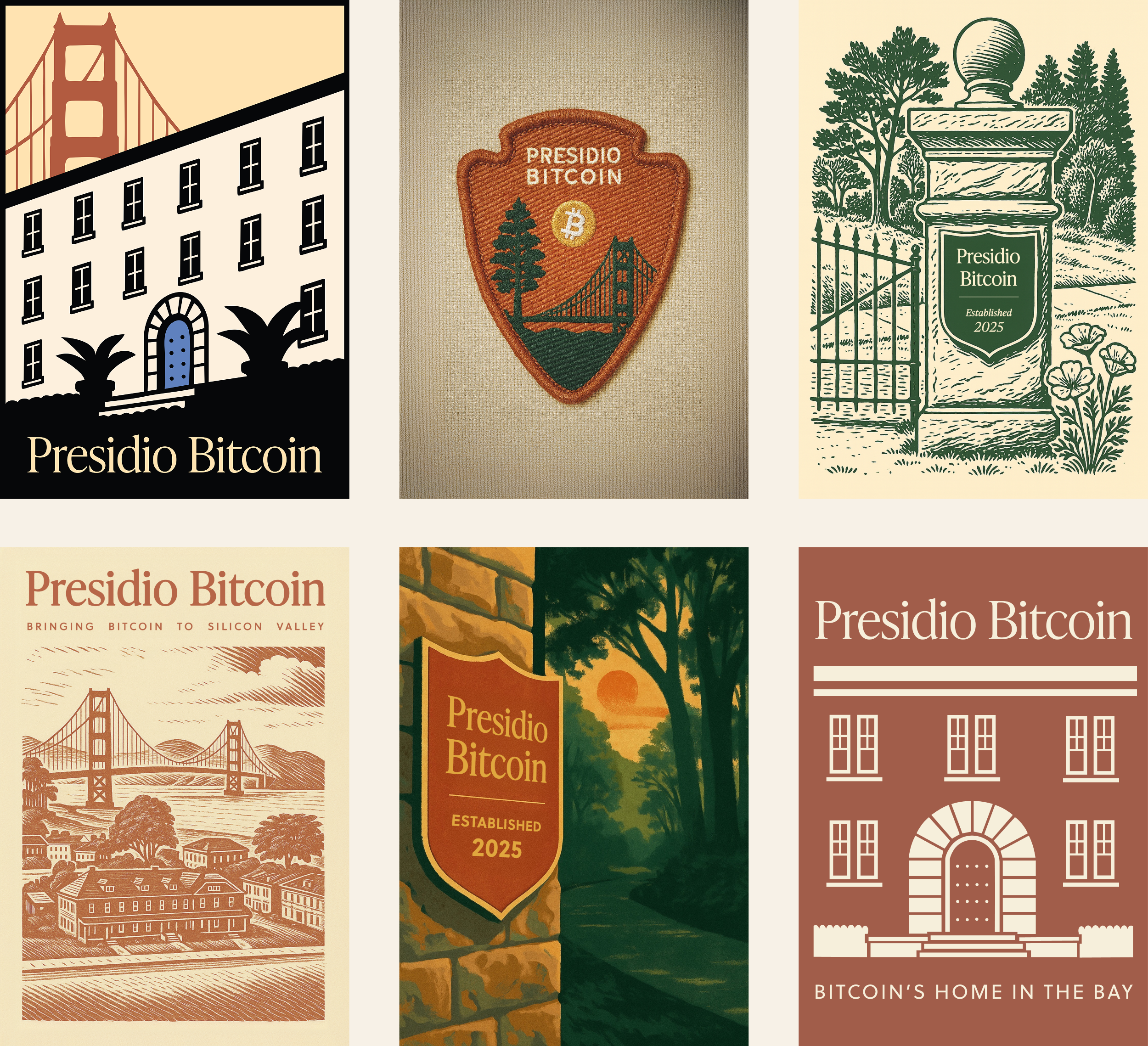 In the heart of San Francisco’s Presidio National Park, Presidio Bitcoin aims to accelerate bitcoin adoption by providing bitcoiners with a place to work, connect and innovate. I partnered with the founding team to extend their initial brand system into real-world applications. I developed an approachable identity inspired by the natural setting and historic character of the Presidio. My work has included creative direction for events, the branding for two recurring podcasts, and a poster series influenced by National Park design traditions.