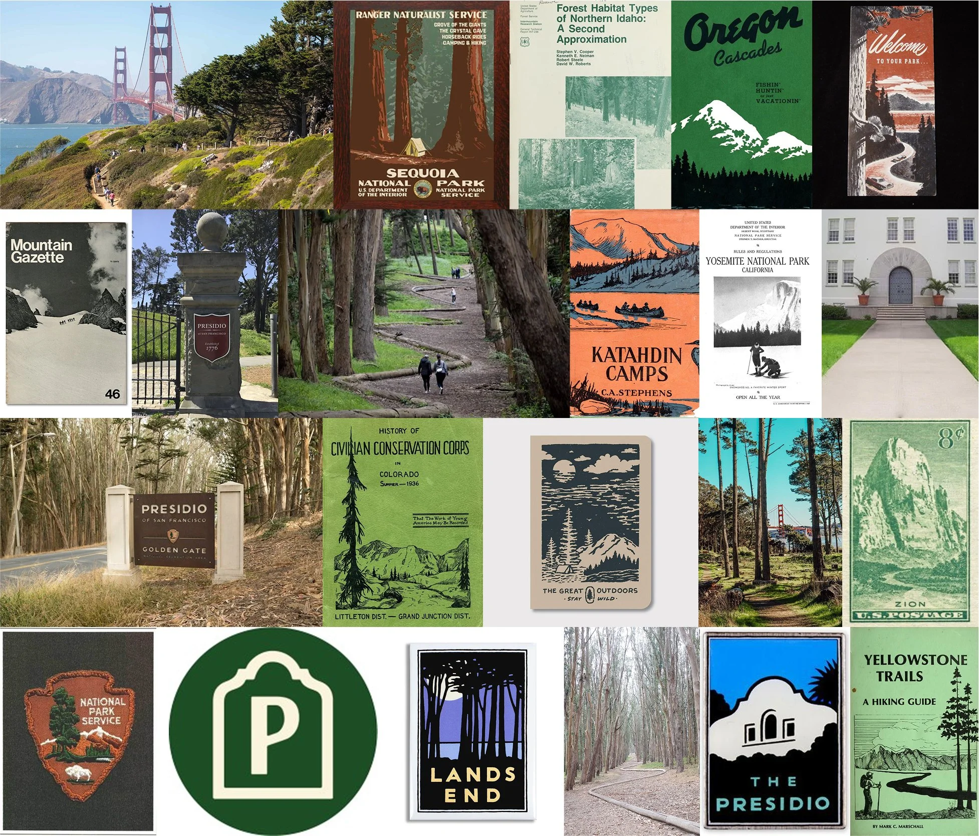 The original brand system lacked flexibility: the wordmark was difficult to use, the colors lacked accessible contrast, and typography relied on a single weight. I refined the brand with a simplified typographic logo, an expanded typographic hierarchy, and a new forest green color. Visual direction is grounded in WPA posters, trail signage, and conservation-era literature.